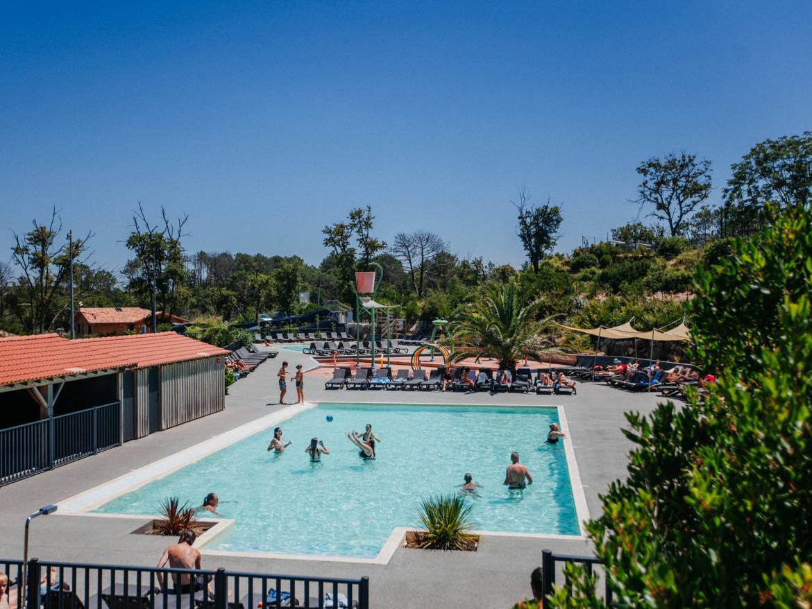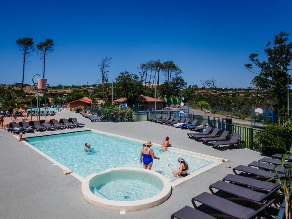 Nuestro parque acuático, en su remanso de verdor, será sin duda el escenario de largas tardes de diversión y relax. Le gustarán sus dos zonas de baños de burbujas, sus terrazas y la atmósfera de paz de este espacio acuático. Sus hijos se divertirán horas y horas en la piscina lúdica con juegos de agua, mientras que, usted disfrutará plenamente de los beneficios solares bronceándose en la terraza del bar… Ideal para fusionar el ponerse en forma con la relajación.